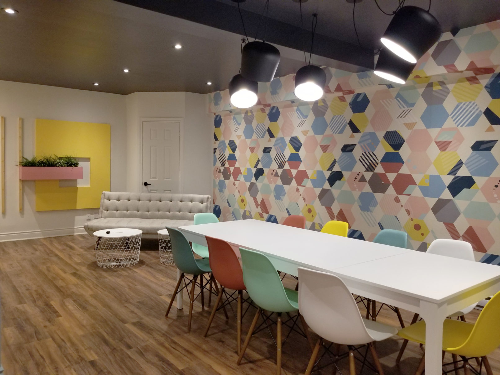 l’espace de 840 pieds carrés possède une salle de conférence (ou espace de travail collectif), un bureau fermé si vous sentez un besoin de travailler dans la solitude, des rencontres clients privés et une cuisine toute équipée.